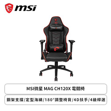 MSI微星 MAG CH120X 電競椅/鋼架支撐/定型海綿/180°調整椅背/4D扶手/4級桿選