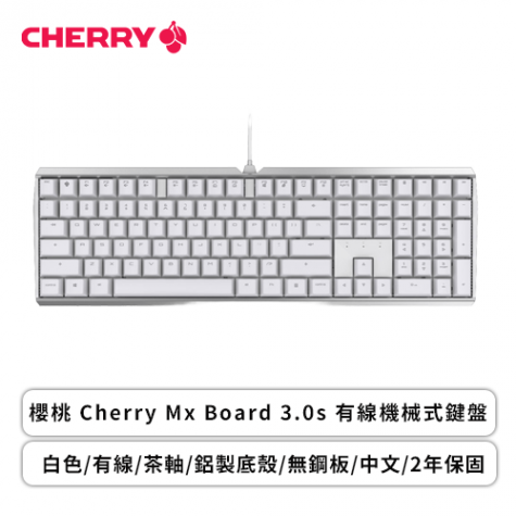 櫻桃 Cherry Mx Board 3.0s 機械式鍵盤(白色/有線/茶軸/鋁製底殼/無鋼板/中文/2年保固)