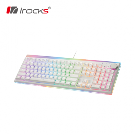 irocks K71M-Gateron 機械式鍵盤 (白色/有線/青軸/PBT/金屬旋鈕/懸浮/RGB/中文/1年保固)