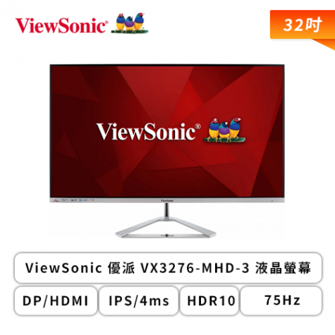 【32型】ViewSonic 優派 VX3276-MHD-3 液晶螢幕 (DP/HDMI/D-Sub/IPS/4ms/75Hz/Adaptive Sync/HDR10/內建喇叭/一年無亮點/三年保固)