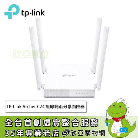 TP-Link Archer C24 無線網路分享路由器/AC750/雙頻/四天線/4埠100Mbps/三年保固
