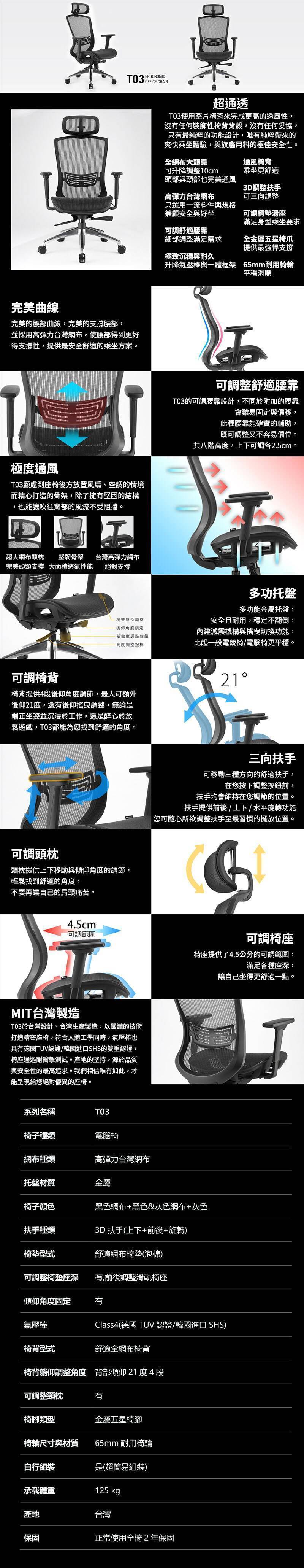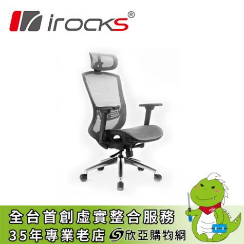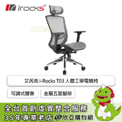 irocks T03 人體工學電競椅/可調式腰靠/金屬五星腳架/可調椅墊滑座/太空灰