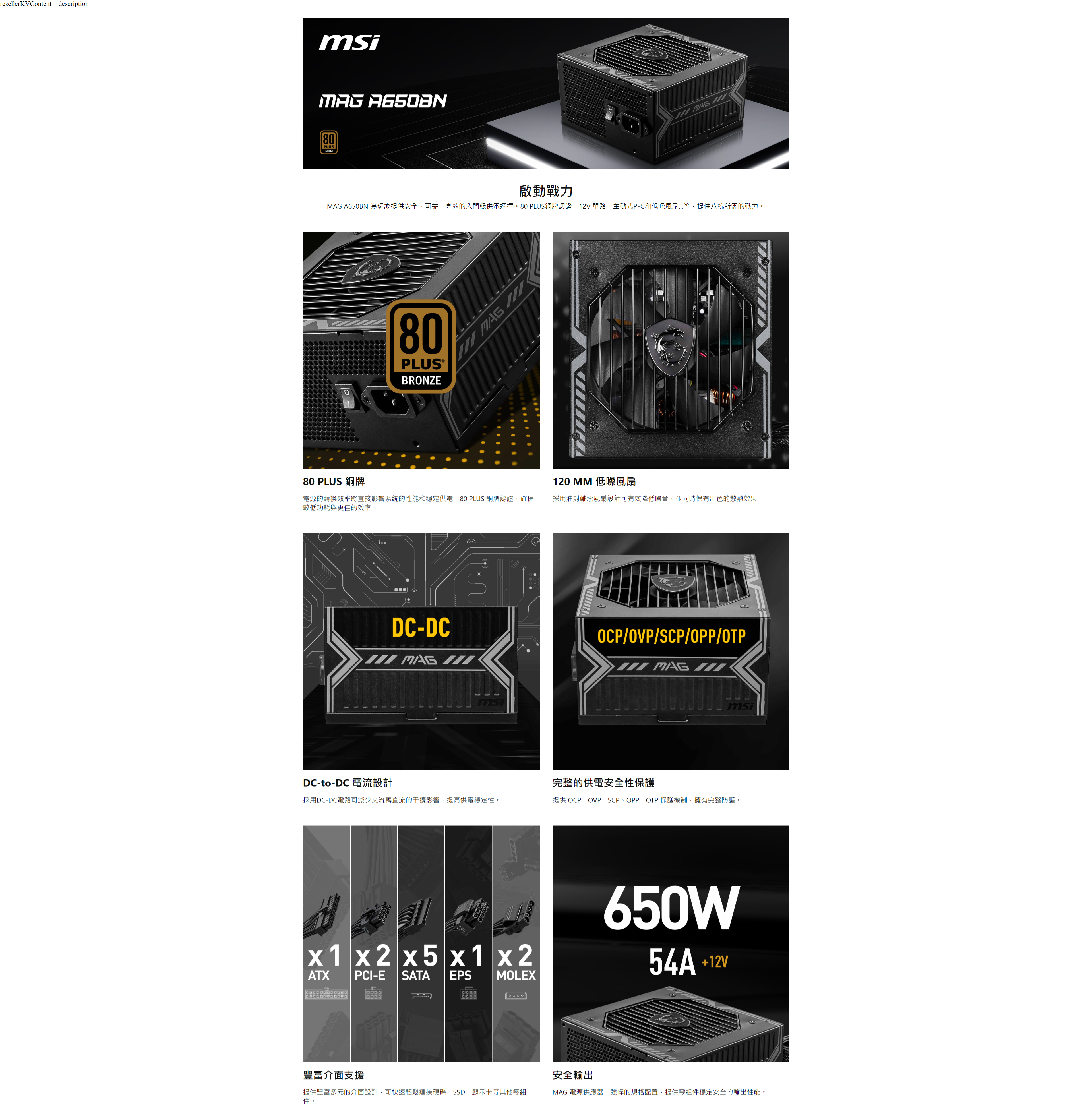 微星 MAG A650BN (80+銅牌/ATX/直出/五年保固)