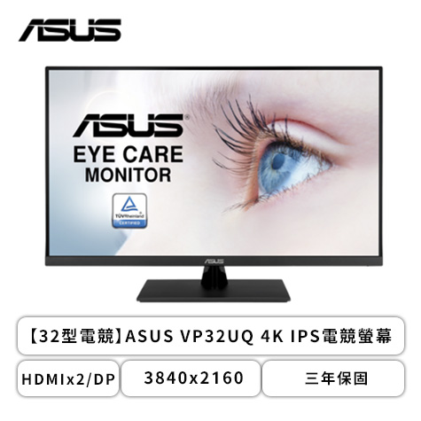 【32型】華碩 VP32UQ 液晶螢幕 (DP/HDMI/IPS/4K/4ms/Adaptive-Sync/HDR10/不閃屏/低藍光/內建喇叭/三年保固)