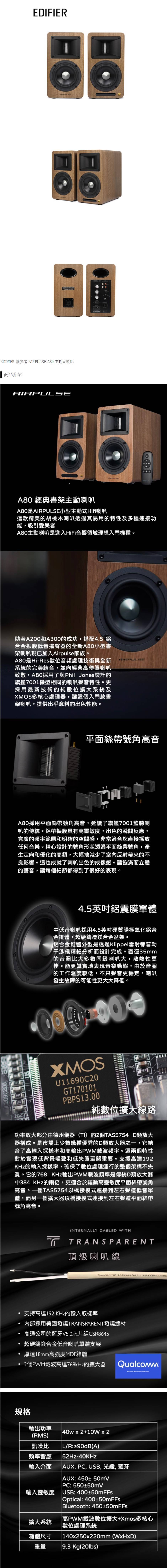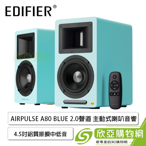 漫步者Edifier AIRPULSE A80 藍色 2.0聲道 主動式喇叭音響/4.5吋鋁質振膜低失真中低音單體/Hi-Res/18MM高強度MDF