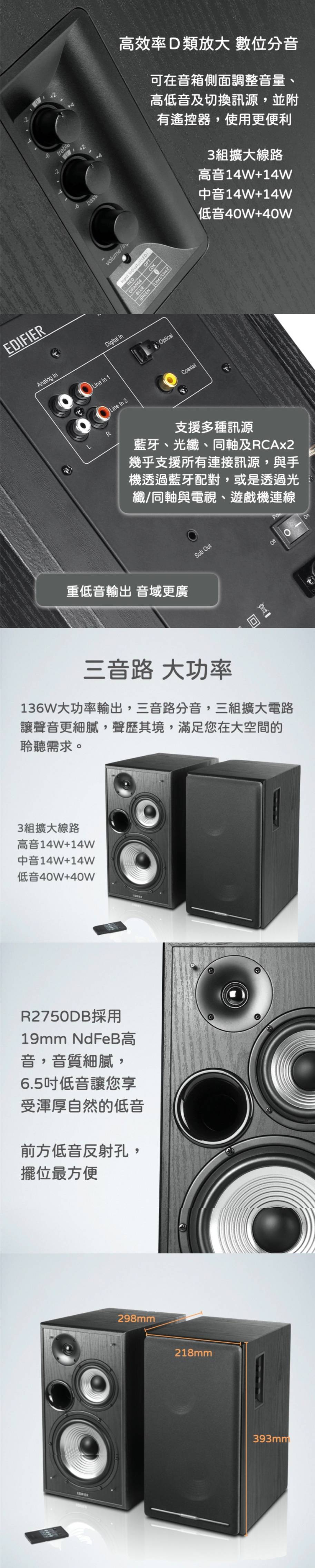 漫步者Edifier R2750DB 三音路喇叭 /Bluetooth V4.1/D類數位擴大