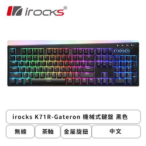 irocks K71R-Gateron 機械式鍵盤 (黑色/無線/茶軸/PBT/金屬旋鈕/專屬設定軟體/RGB/中文/1年保固)