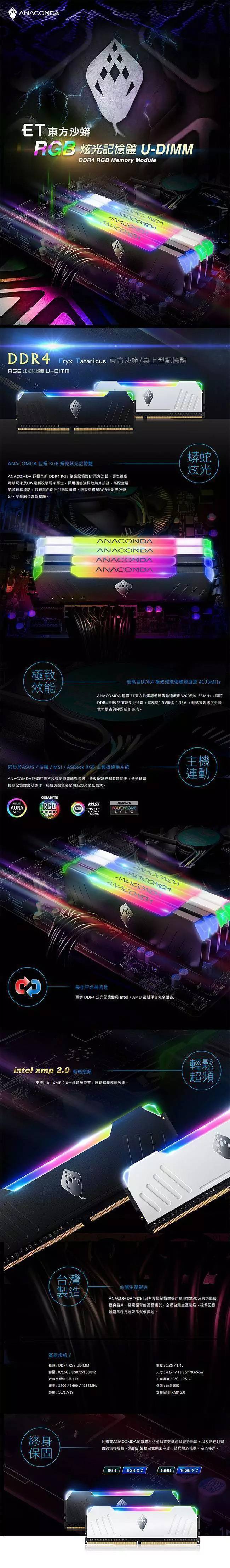 巨蟒 ANACOMDA ET 東方沙蟒 RGB DDR4-3600 16G(8G*2)-白(CL18)
