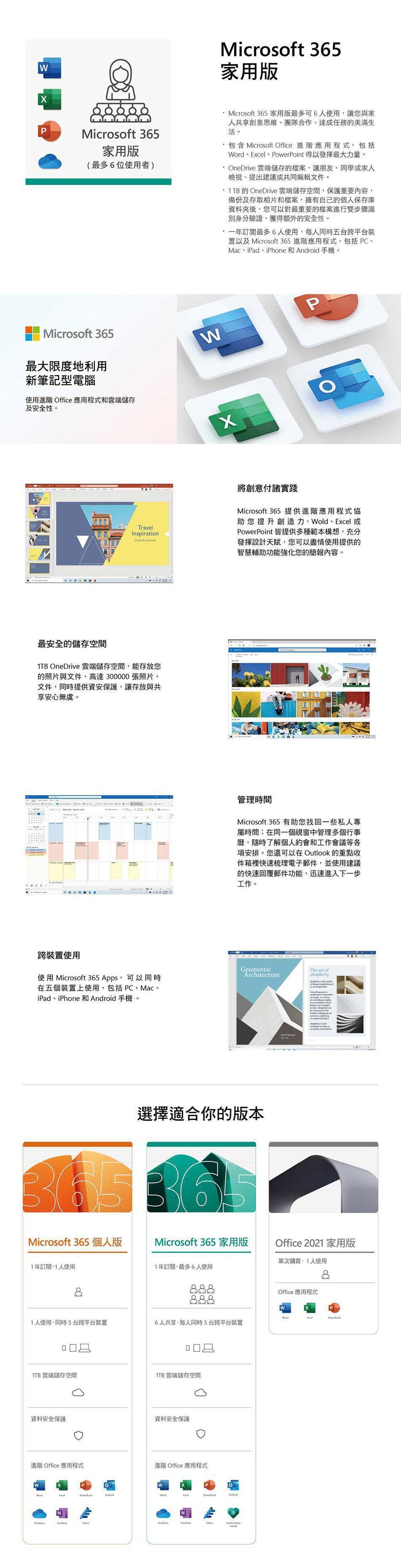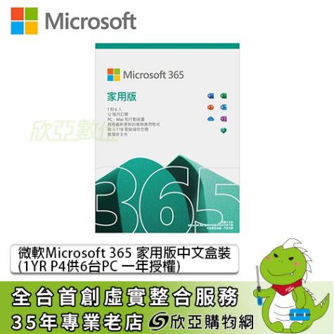 Microsoft office 365 家用版中文無光碟一年訂閱(PKC)+1TB雲端空間(供6台設備使用) / EP2-32350