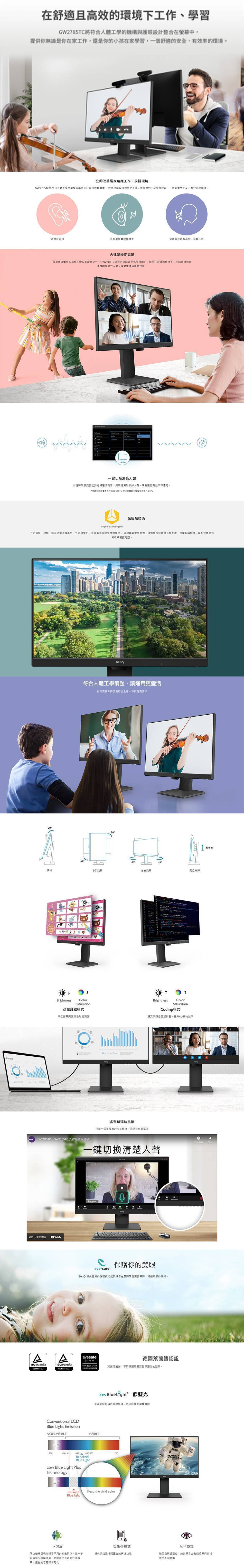 【27型】BenQ GW2785TC 液晶螢幕 (DP/HDMI/Type-C(60W)/IPS/5ms/75Hz/光智慧/菊練串/Coding模式/雙向智慧降噪/不閃屏/低藍光/可升降/可旋轉/內建喇叭/三年保固)