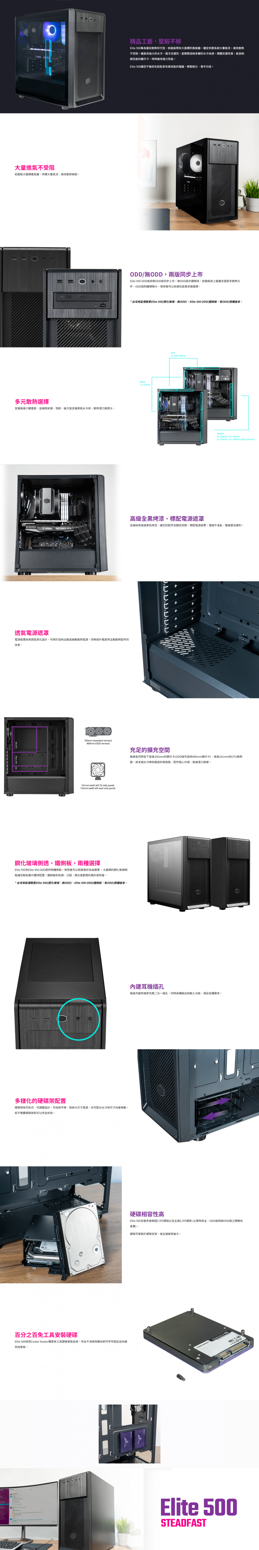 風扇支援 - 前方 2x 140mm, 3x 120mm (E500-KGNN-S00, E500-KNNN-S00), 2x 120mm (E500-KGNN-S00, E500-KNNN-S00), 3x 120mm (remove ODD bracket) (E500-KGNN-S00, E500-KNNN-S00)