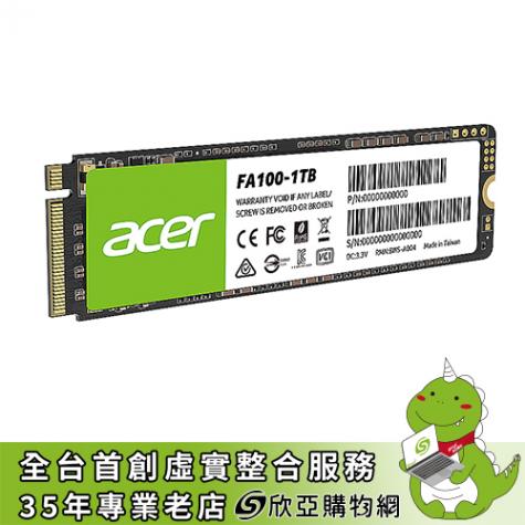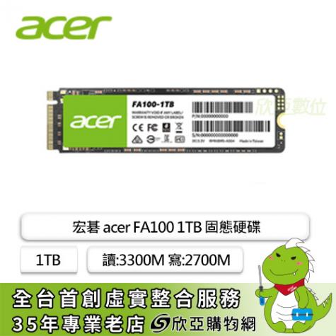 宏碁 acer FA100 1TB/M.2 PCIe Gen3/讀:3300M/寫:2700M/TLC/五年保