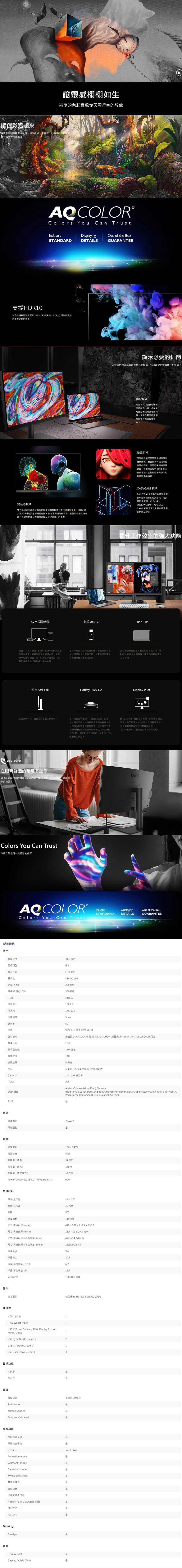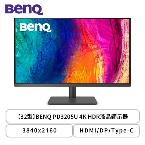 【32型】BenQ PD3205U 專業螢幕 (DP/HDMI/Type-C(90W)/IPS/4K/HDR10/99% sRGB/Delta E≤3/CAD-CAM 模式/菊練串/不閃屏/低藍光/可升降/可旋轉/內建喇叭/三年保固)