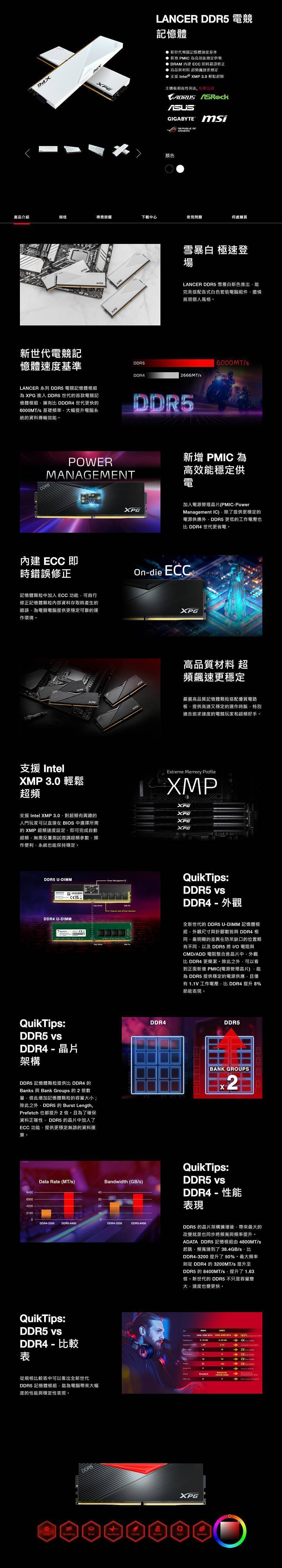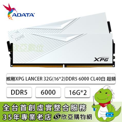 威剛 XPG LANCER DDR5-6000 32G(16G*2)-白(CL30/支援XMP&EXPO)