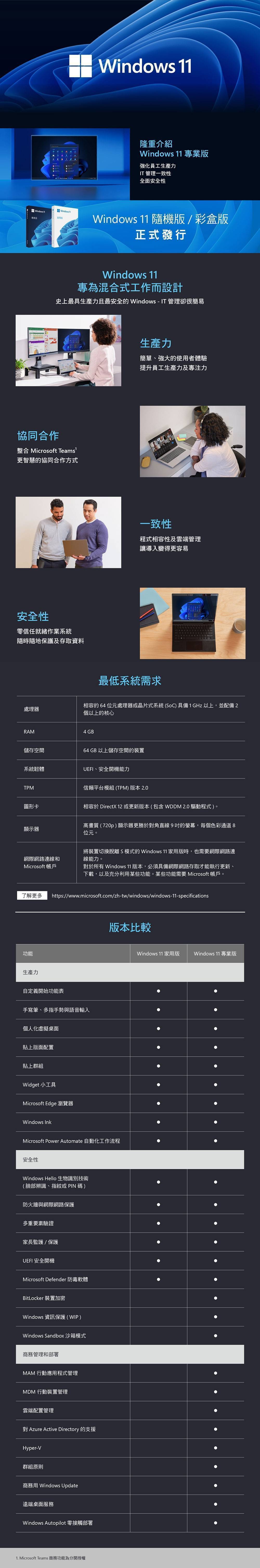 微軟Windows 11 Pro 專業中文彩盒版 64位元