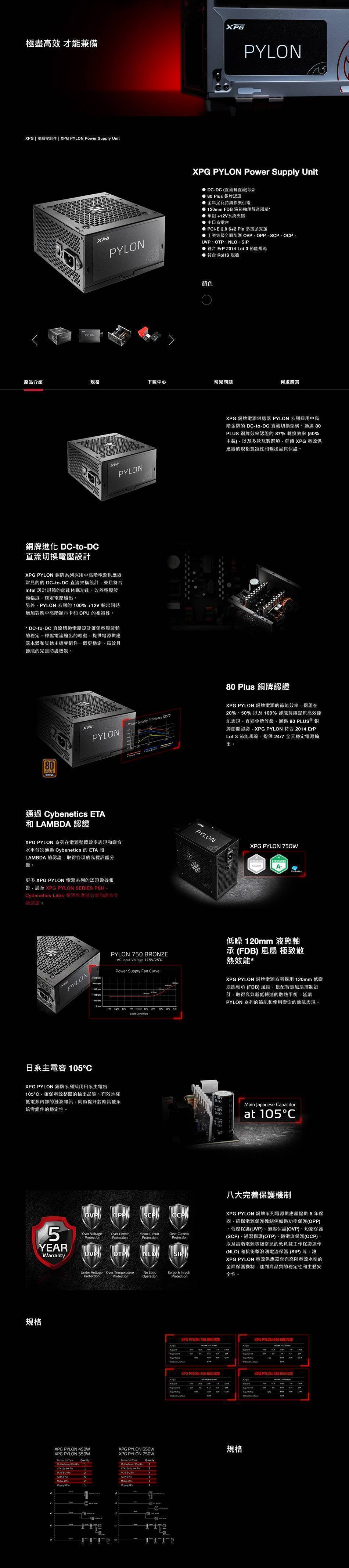 XPG 威剛 CORE PYLON 550W (80+銅牌/ATX/直出/主日系/五年保固)