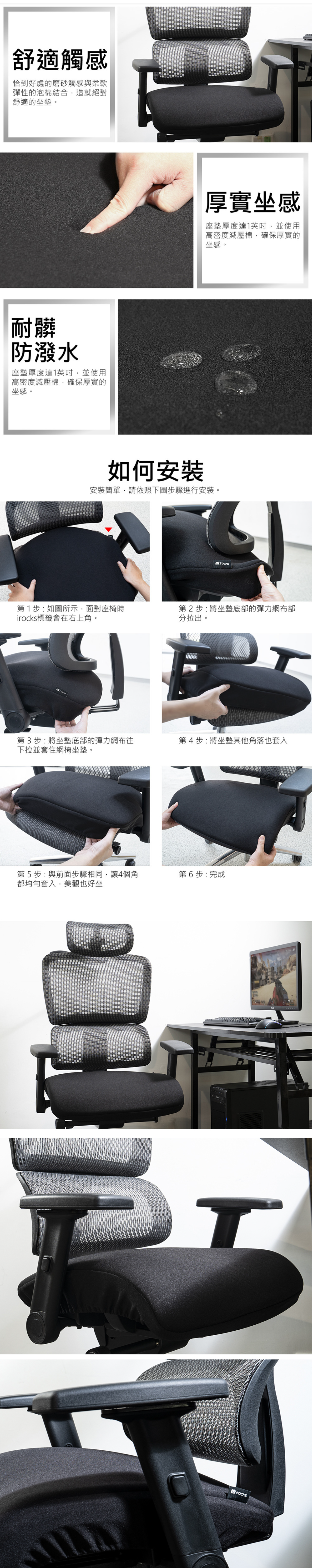 【專用椅墊】irocks T07 PLUS人體工學椅專用椅墊(黑)/舒適坐感/厚實坐感/耐髒汙防潑水