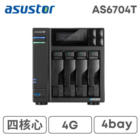 ASUSTOR 華芸 AS6704T 4Bay NAS 網路儲存伺服器/Intel 四核心/4GB
