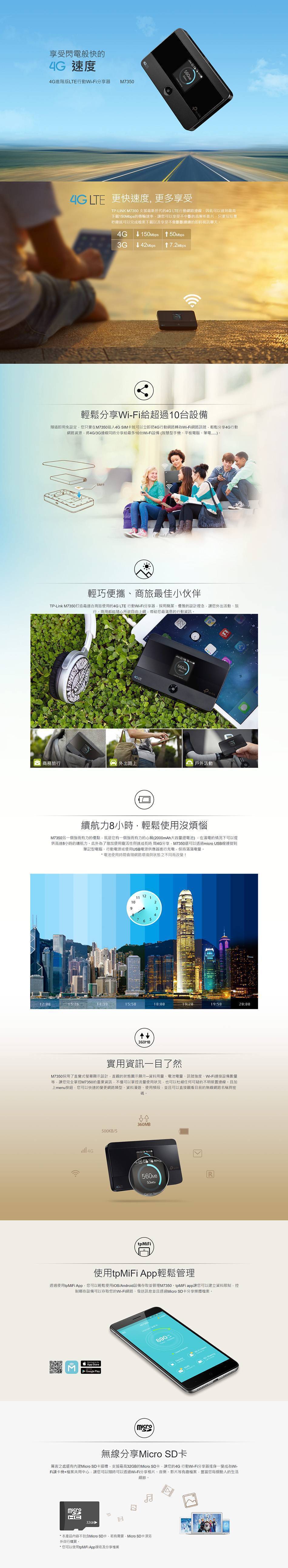TP-Link M7350 無線行動分享器/內建2000mAh電池/4G LTE/三年保固