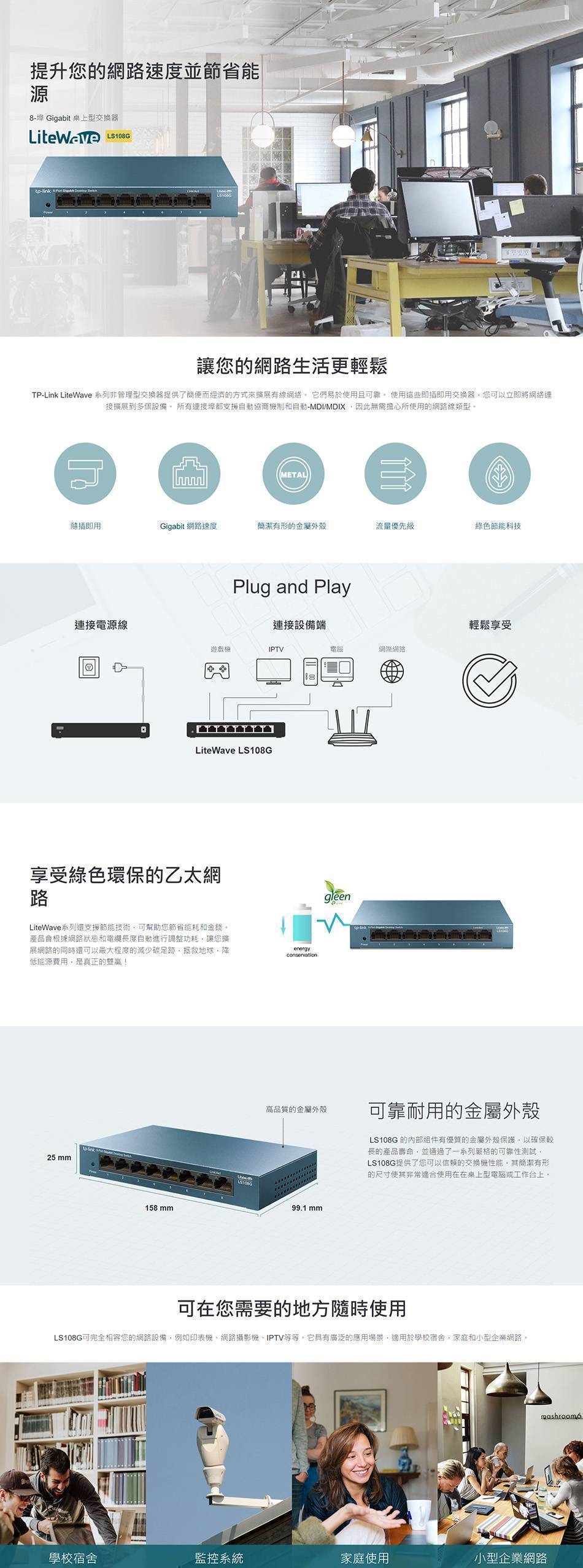 ★8埠10/100/1000Mbps 自動協商 RJ45 埠 / 支援自動-MDI/MDIX