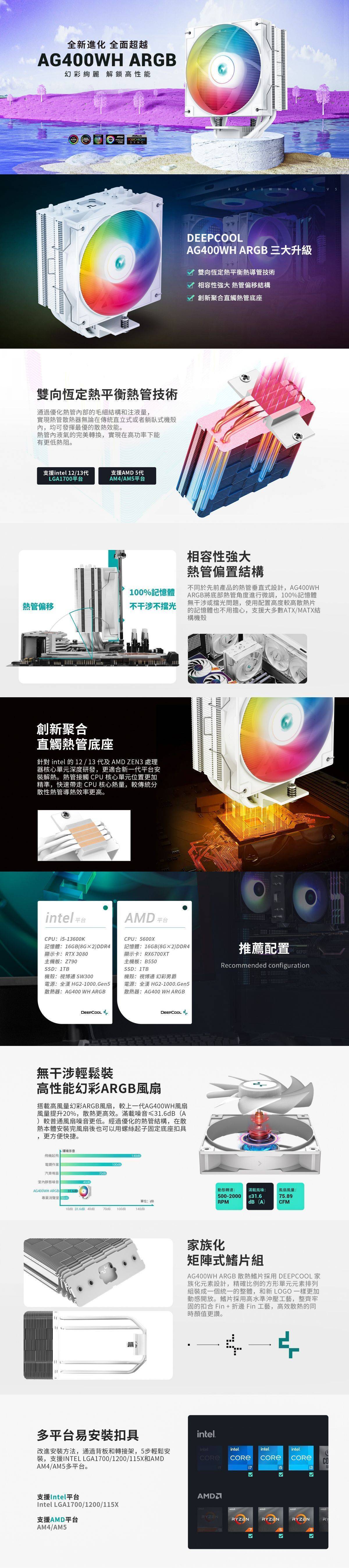 DEEPCOOL 九州風神 AG400 ARGB 白 (4導管/12cm風扇*1/高150mm)