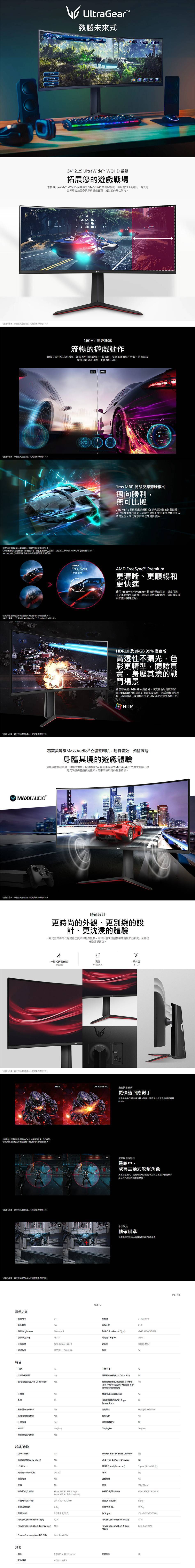 ▶34" UltraGear™ WQHD 21:9 曲面專業玩家電競顯示器