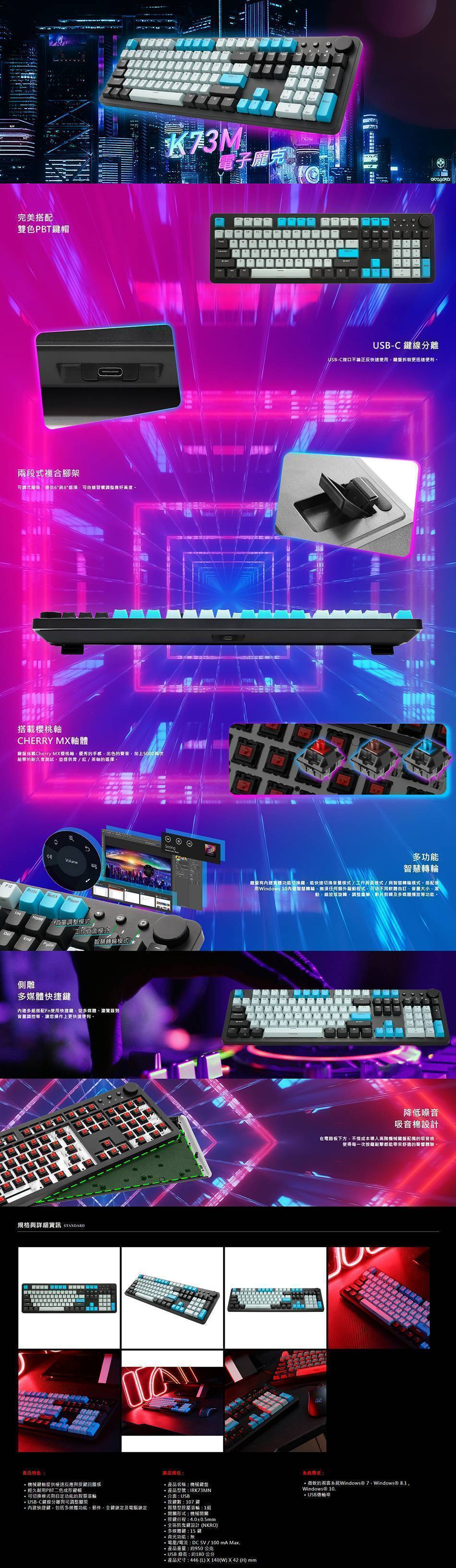 irocks K73R 無線機械式鍵盤(電子龐克/無線/紅軸/PBT/中文/1年保固)