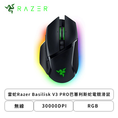 雷蛇Razer Basilisk V3 PRO巴塞利斯蛇V3 PRO無線電競滑鼠(黑色/無線/30000Dpi/112克/RGB/2年保固)