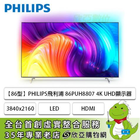 【86型】PHILIPS飛利浦 86PUH8807 4K智慧聯網液晶顯示器(含基本安裝)