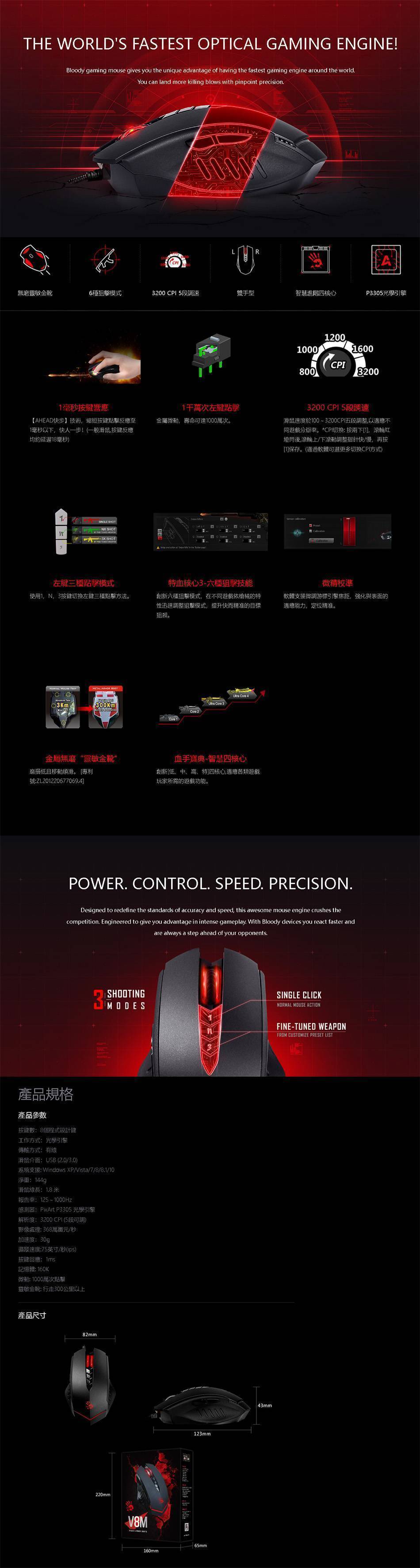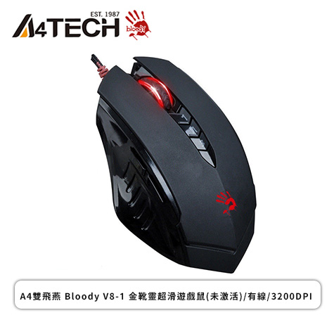 A4雙飛燕 Bloody V8-1 金靴靈超滑遊戲鼠(未激活)/有線/3200DPI