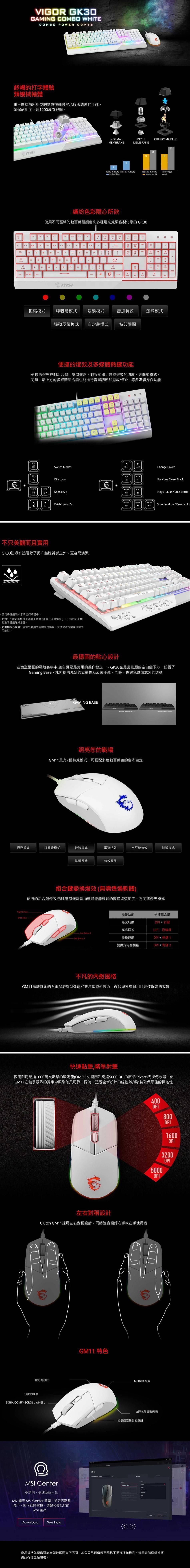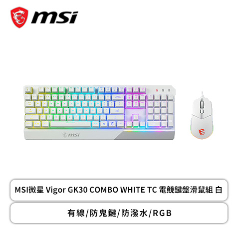 玩家最佳的配備組合Vigor GK30 Combo White,內含Vigor GK30電競鍵盤和CLUTCH GM11電競滑鼠