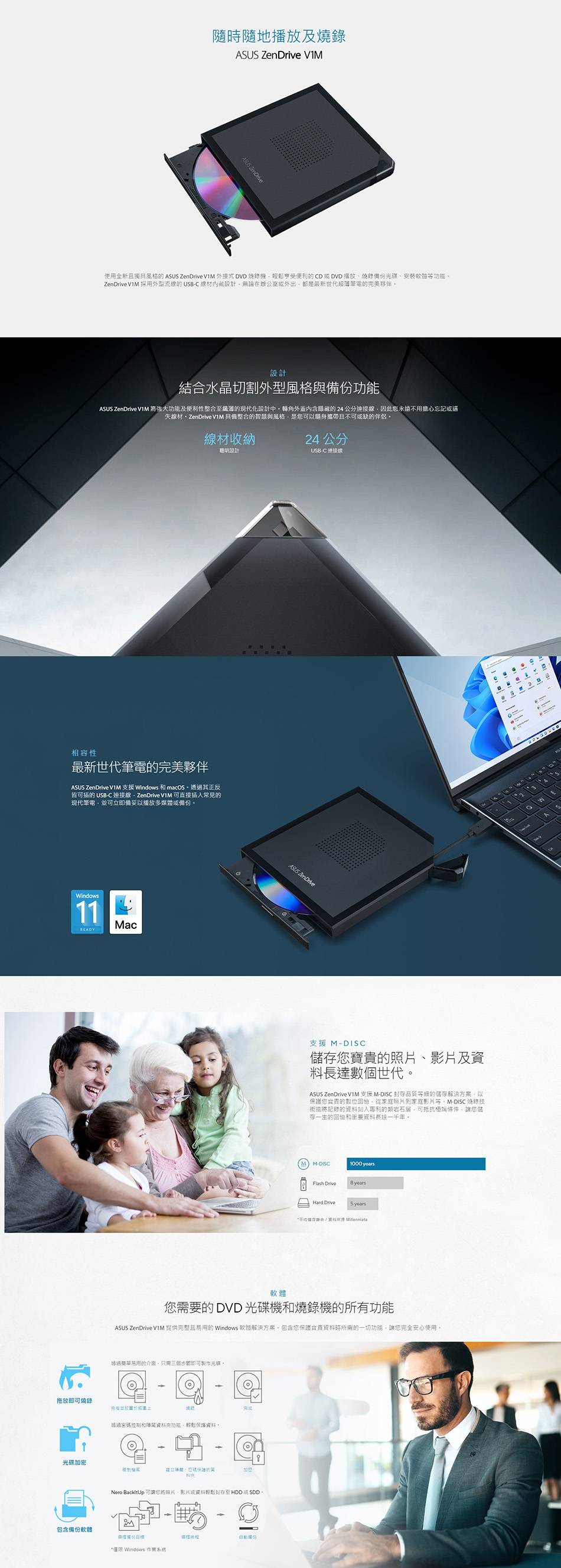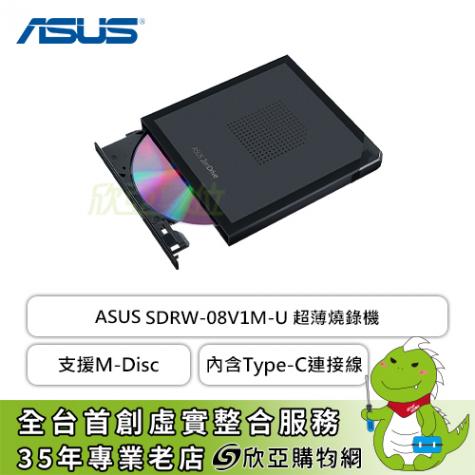 華碩 SDRW-08V1M 黑 外接式DVD燒錄機 (超薄/8XDVD/支援M-Disc/內含Type-C連接線/支援Windows、macOS)