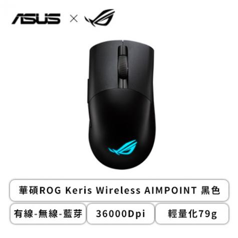 華碩 ROG Keris Wireless Aimpoint 無線三模電競滑鼠(黑色/有線-無線-藍芽/36000Dpi/79克/可更換微動/RGB)