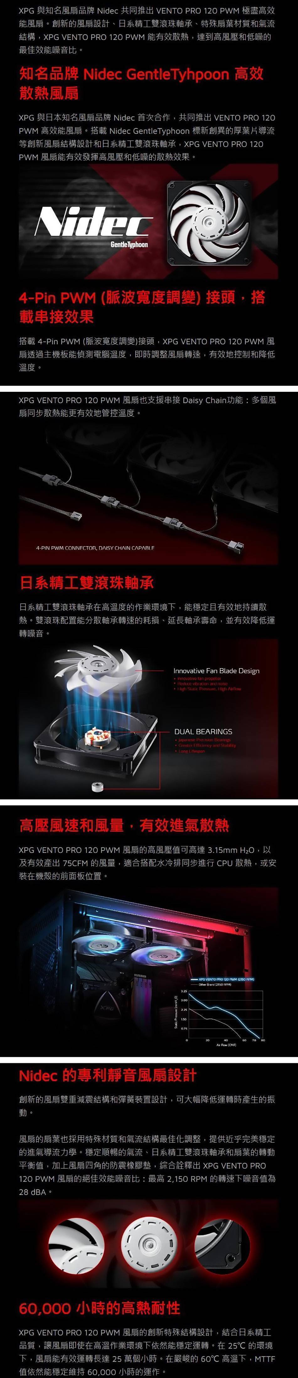 XPG 威剛 VENTO PRO 120 PWM 溫柔颱風-三入組(買2送1-共3顆)