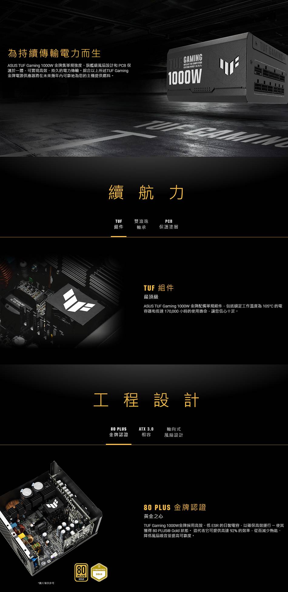 華碩 TUF GAMING 1000W Gold (80+金牌/PCIe 5.0/ATX3.0/雙滾珠風扇/智慧停轉/防潮塗層/全模組/主日系/十年保固)