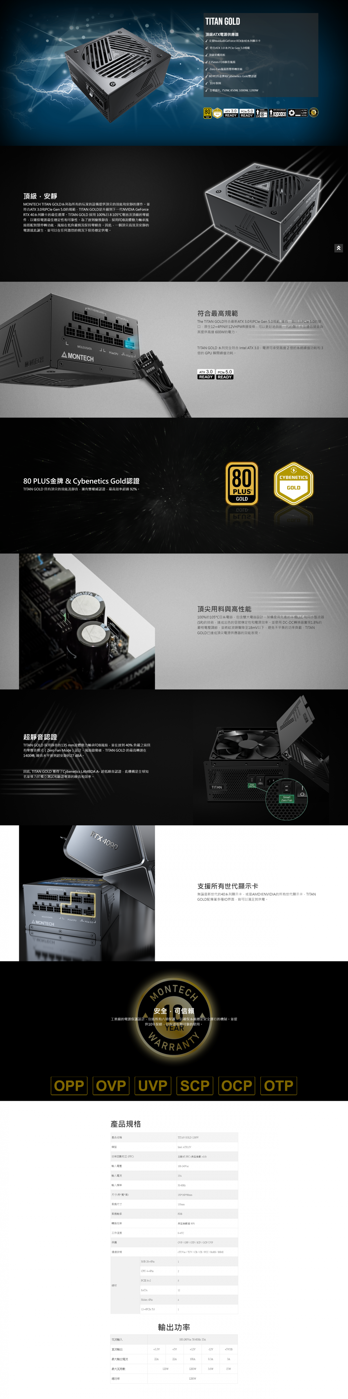 MONTECH TITAN 1200W (80+金牌/ATX3.0/PCIe 5.0/全模組/全日系/十年保固)