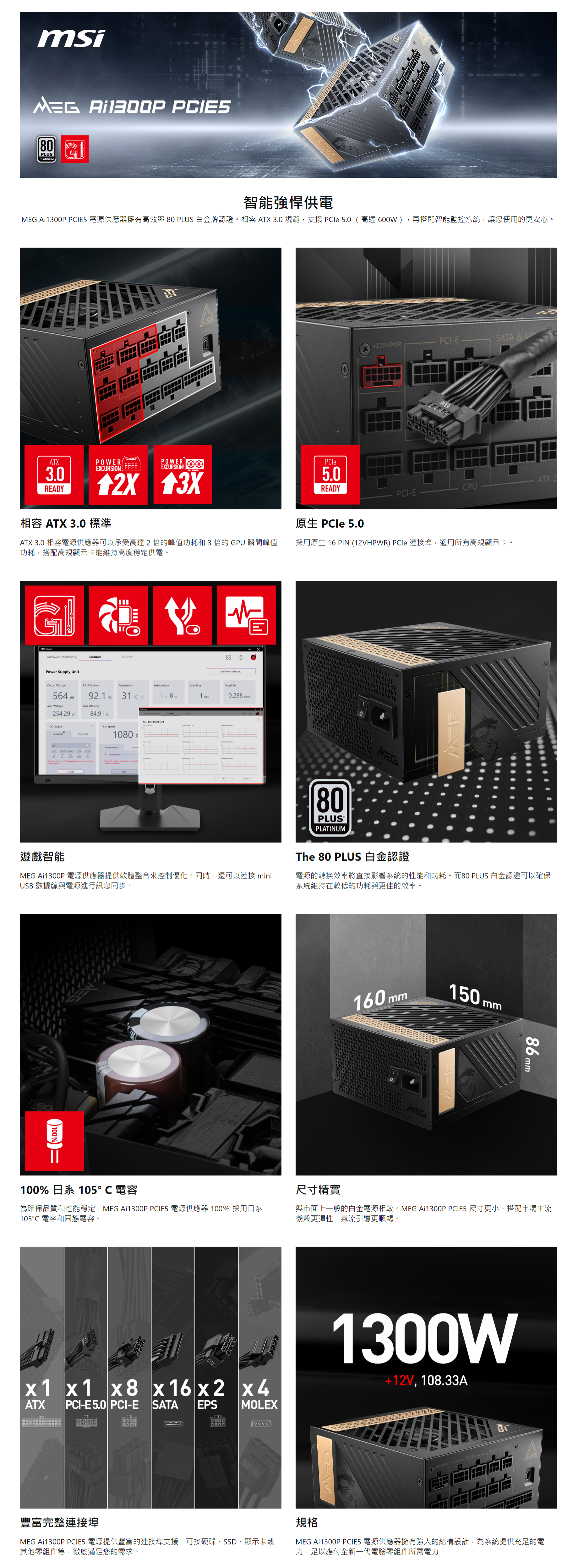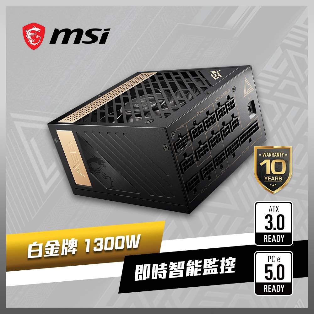 微星 MEG Ai1300P PCIE5 (80+白金牌/PCIe 5.0/ATX3.0/全模組/全日系/十年保固)