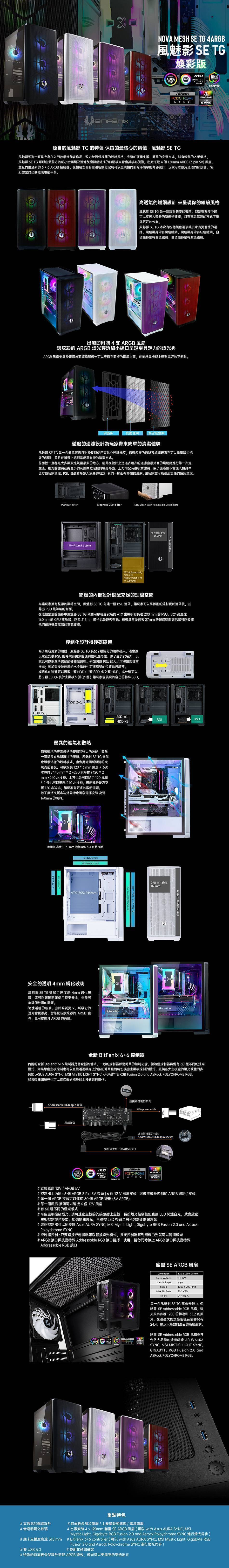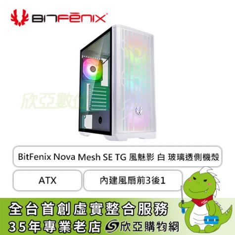 火鳥 BitFenix Nova Mesh SE TG 風魅影 白 玻璃透側機殼 (ATX/內建風扇前3後1/顯卡315mm/塔散160mm)
