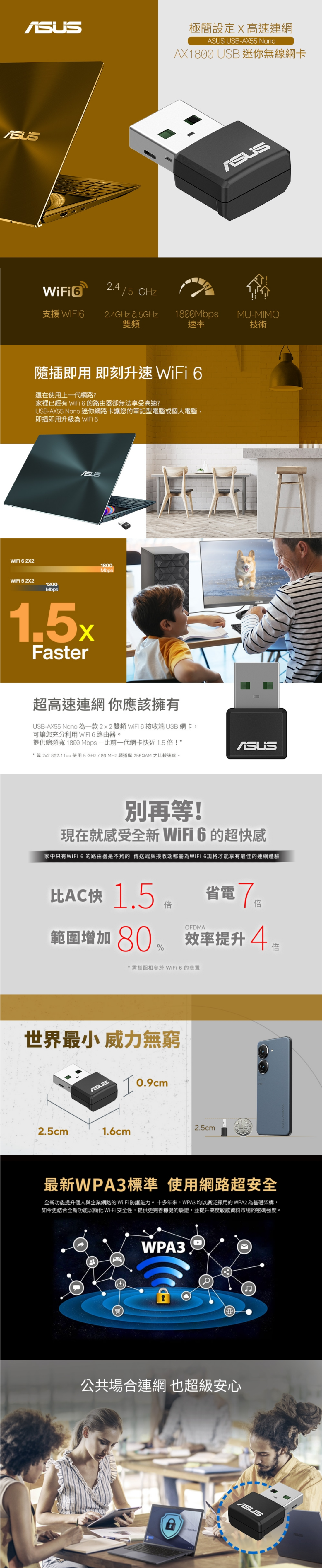 - 世界最小的 USB WiFi 6 網路卡– 以 Nono 尺寸的外型提供超快的 WiFi 速度。