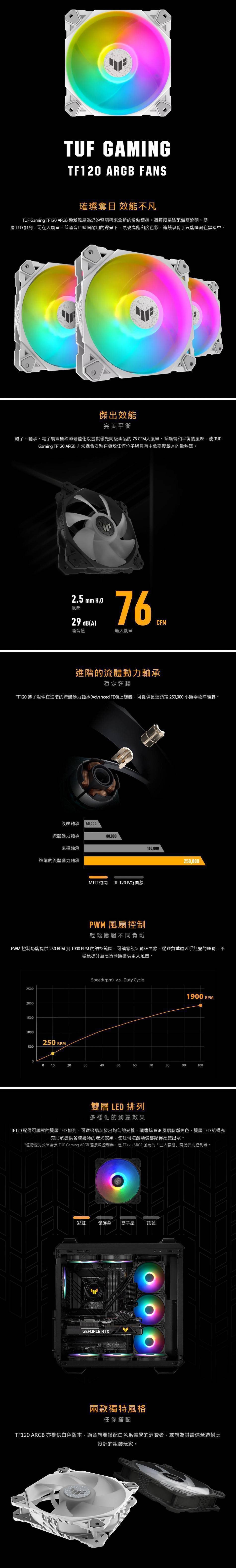 華碩 TUF Gaming TF120 白 A.RGB 單入組 (PWM/抗震襯墊/進階流體動力軸承/1900 RPM/2年保固)