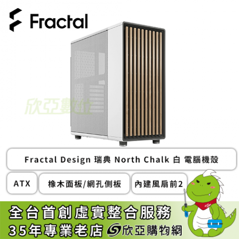 Fractal Design North Chalk 白 電腦機殼 (ATX/Type-C/橡木面板/網孔側板/內建風扇前2/顯卡355mm/塔散170mm)-FD-C-NOR1C-03