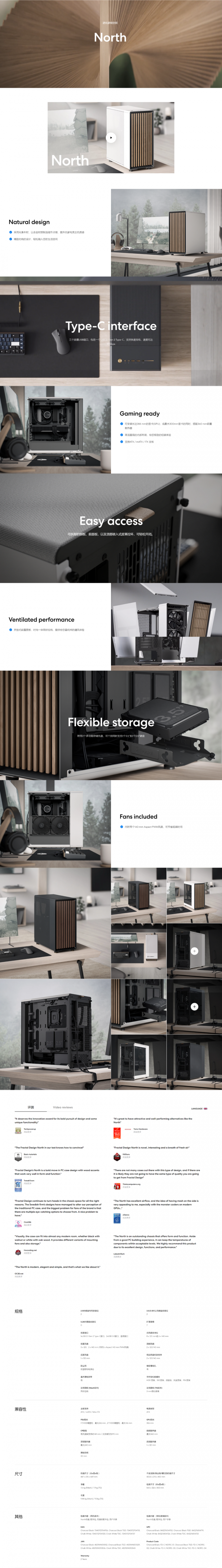 Fractal Design North Chalk 白 玻璃透測機殼 (ATX/Type-C/橡木面板/透明玻璃/內建風扇前2/顯卡355mm/塔散170mm)-FD-C-NOR1C-04