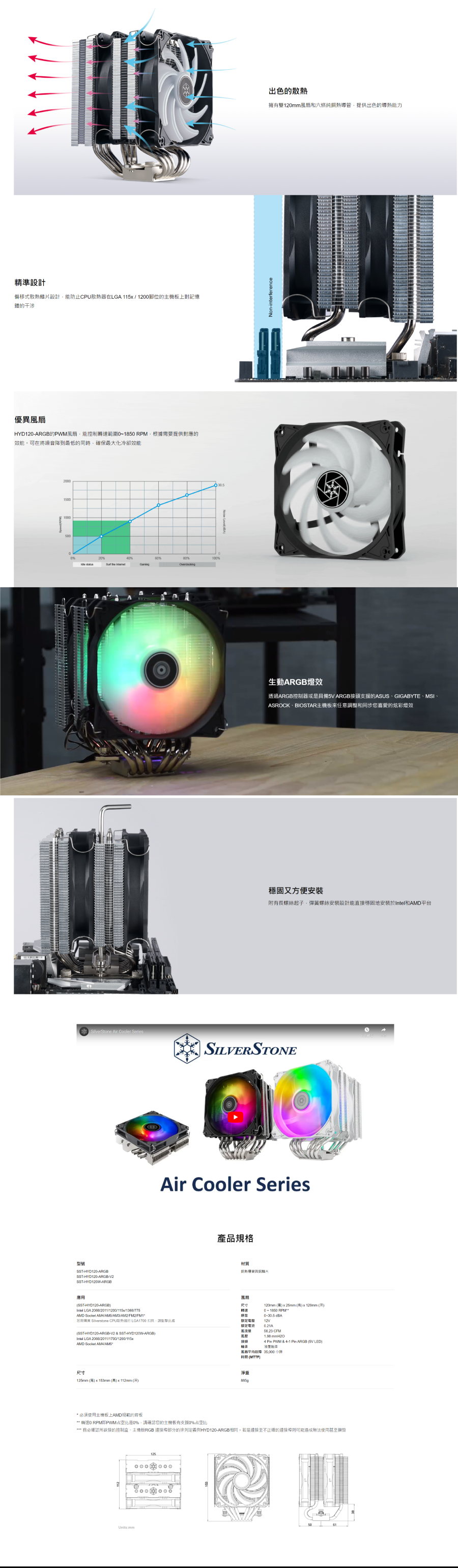 銀欣 Hydrogon D120 ARGB 白 雙塔散熱器 (6導管/12cm風扇*2/雙塔雙扇/高153mm)