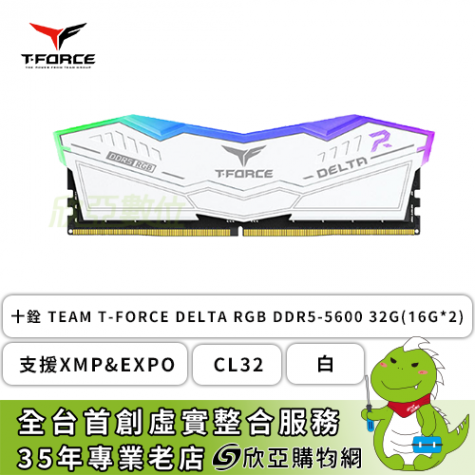 十銓 TEAM T-FORCE DELTA RGB DDR5-5600 32G(16G*2)-白(CL32/支援XMP&EXPO)