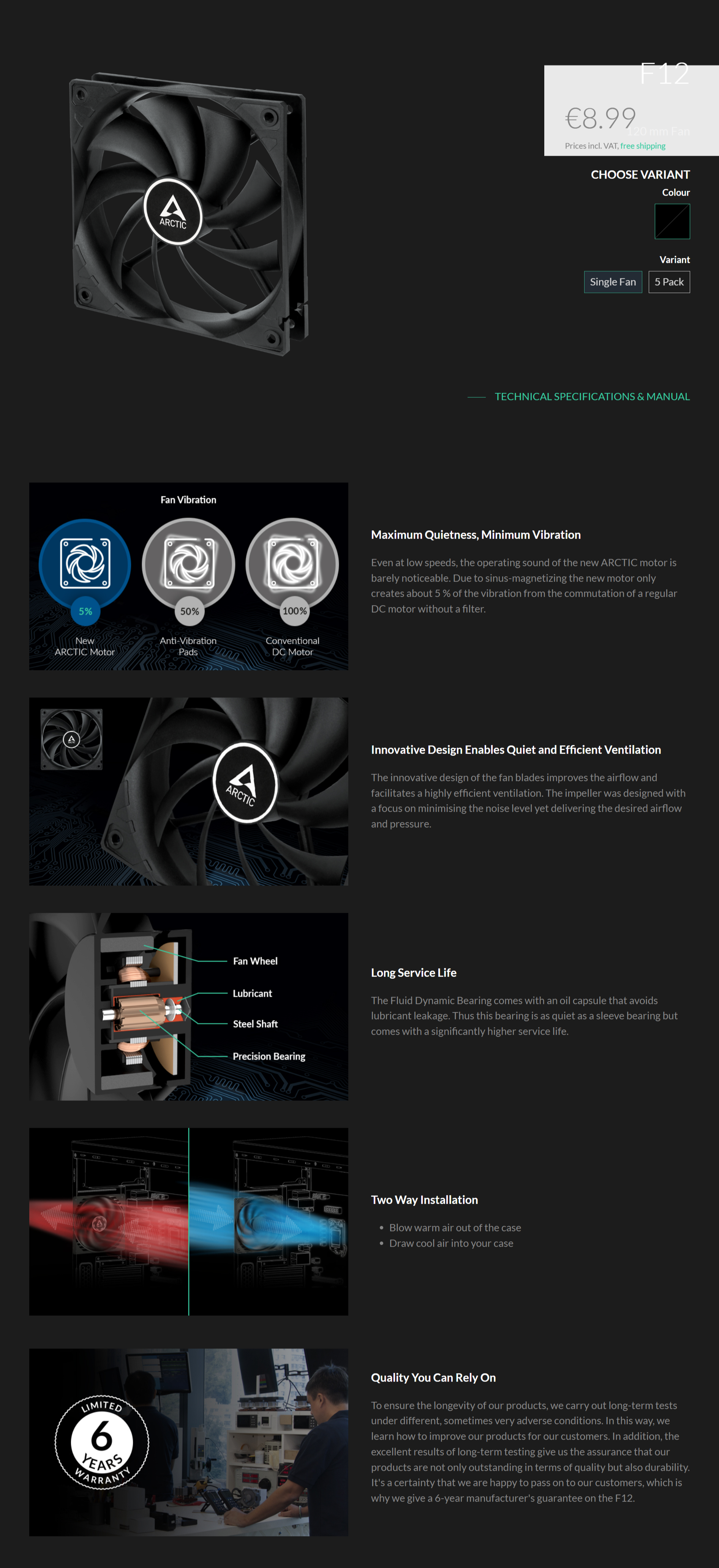 ▶創新靜音設計 ▶高風量及高靜壓設計 ▶低噪音扇葉設計 ▶使用F.D.B.液態軸承
