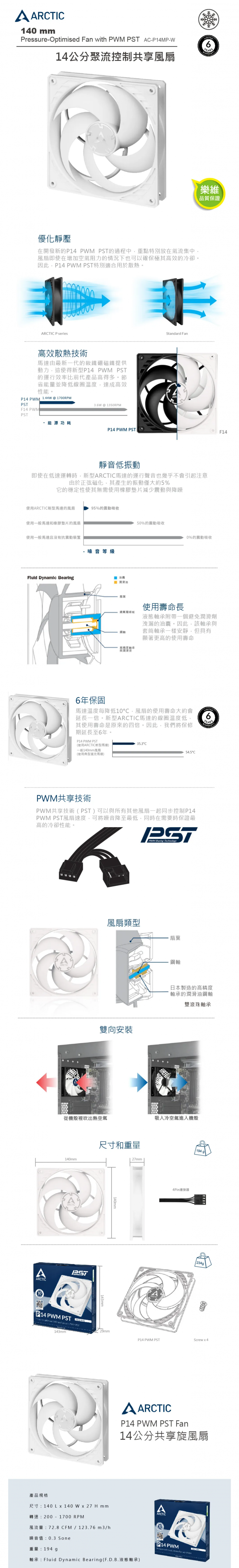 Arctic P14 PWM PST 14公分 聚流控制風扇 白 (PWM/1700 RPM/6年保固)