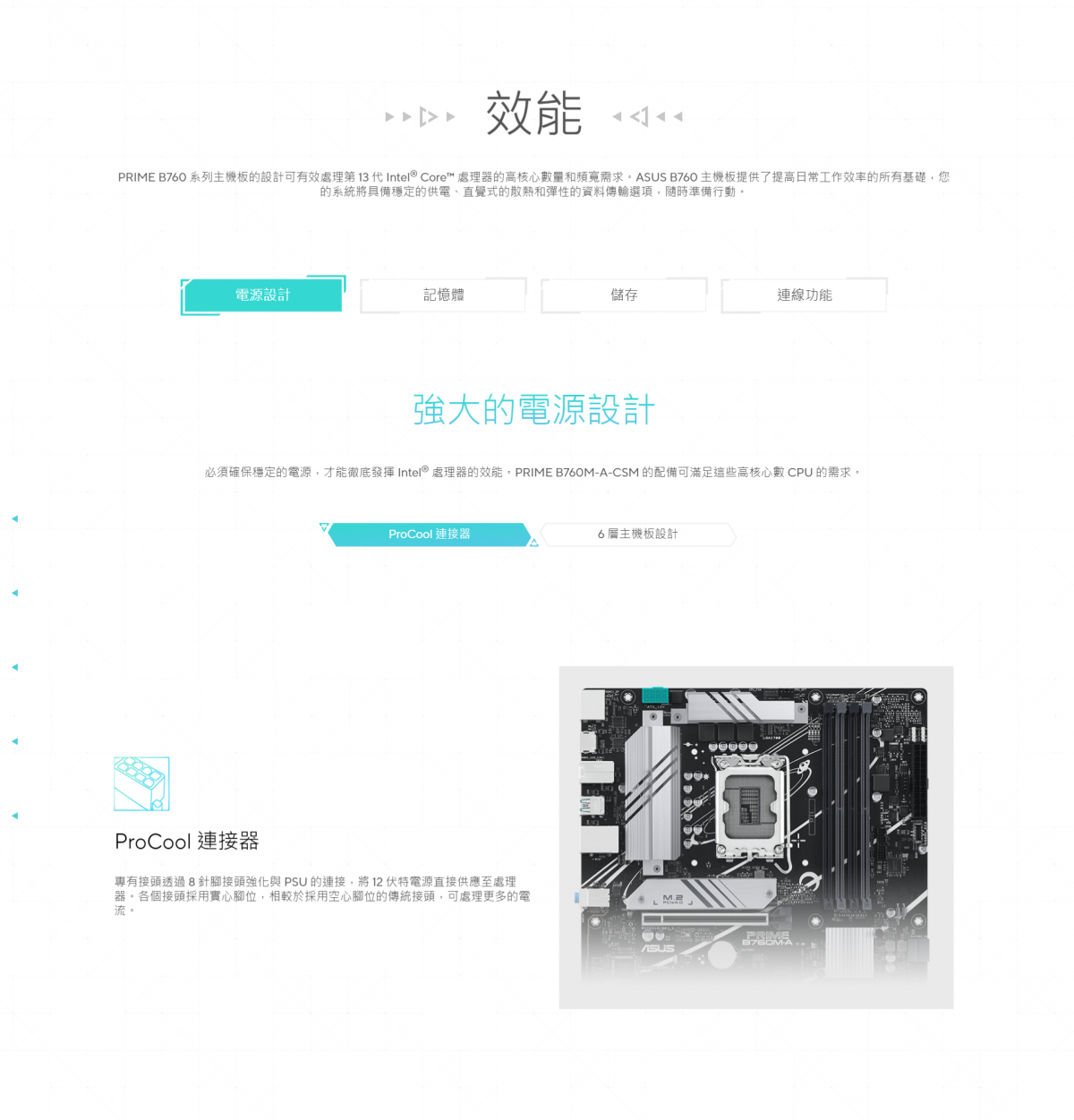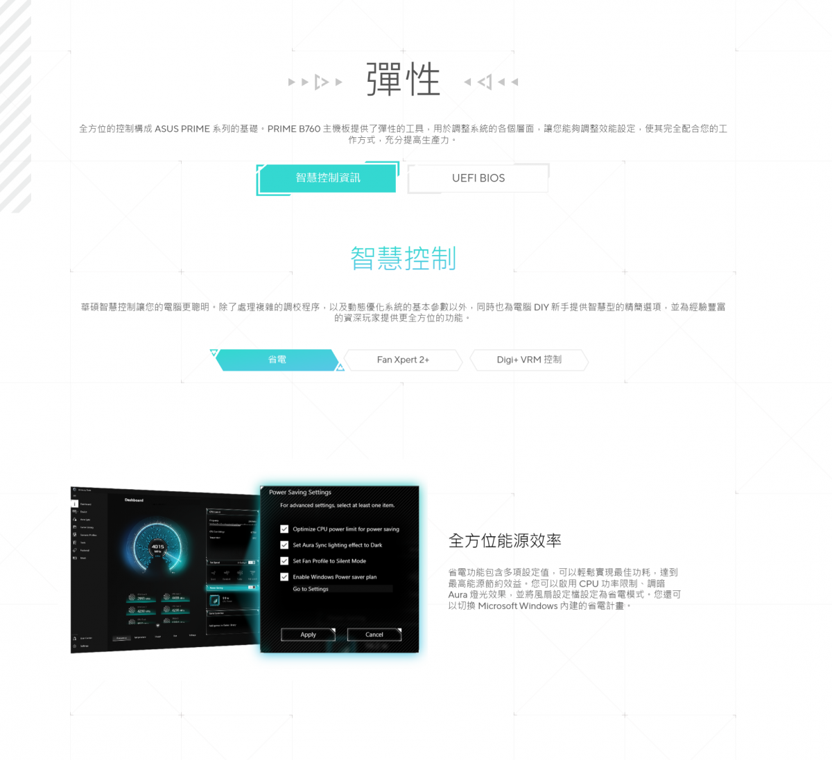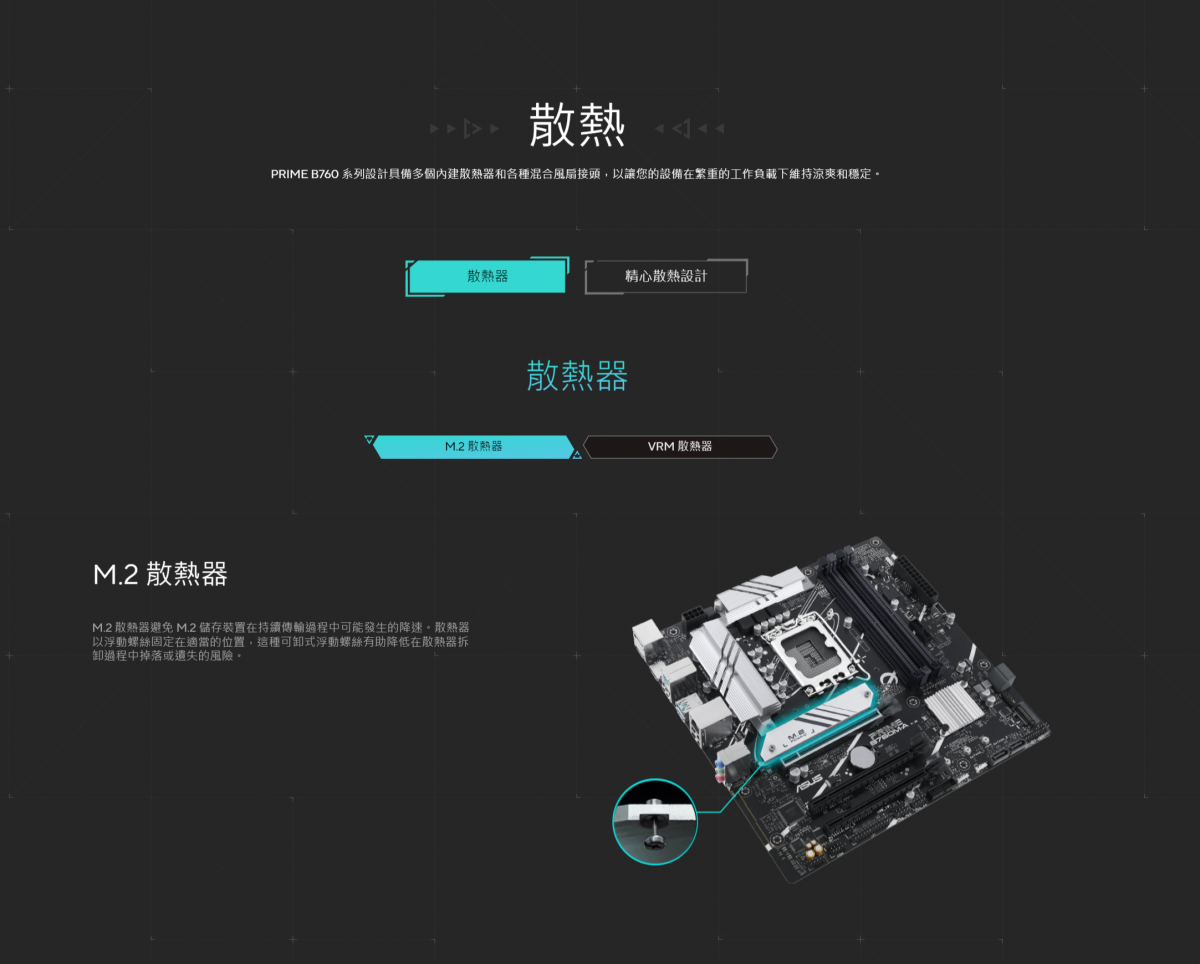 ▶全方位散熱:VRM 散熱器、M.2 散熱器、PCH 散熱器、混合風扇接頭及 Fan Xpert 2+