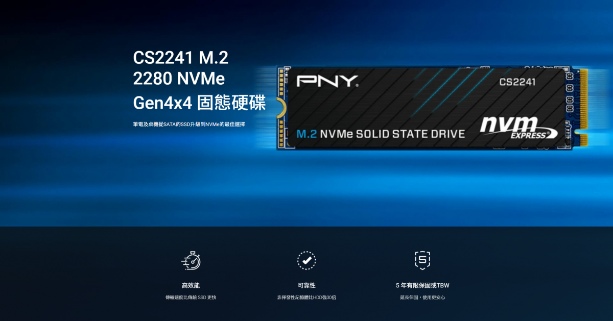 必恩威 PNY CS2241 500GB/M.2 PCle Gen4/讀:4700M/寫:1700M/QLC/五年保