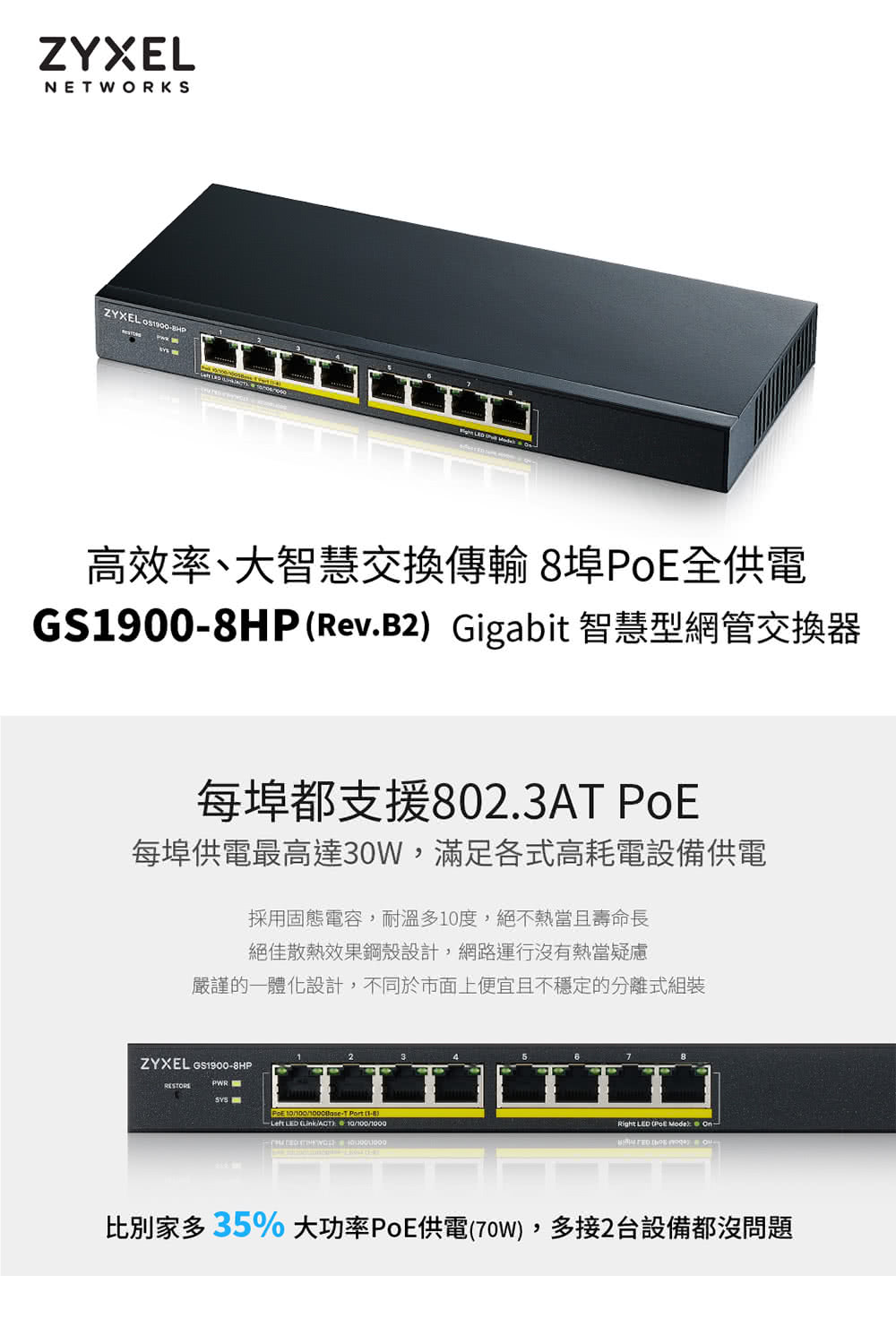 ZyXEL 合勤 GS1920-8HPv2 8埠GbE 智慧型網管PoE交換器