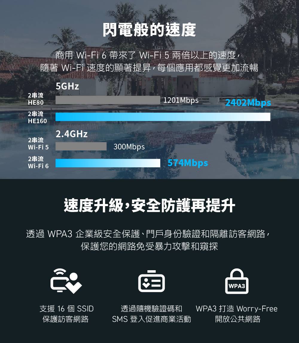 • 進階的AX3000 WiFi 6速度